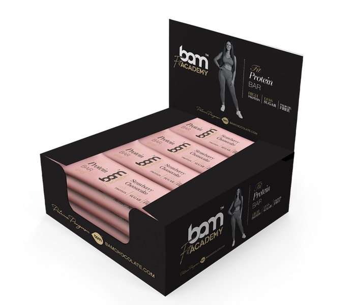 Łączy w sobie chrupkość pasty z orzechów nerkowca, słodką świeżość truskawek i kremowe bogactwo smaku sernika, jednocześnie dostarczając niezbędnego białka, które zapewnia sytość i wspiera aktywny tryb życia. Niezależnie od tego, czy jesteś na szybkim spotkaniu w pracy, w drodze na siłownię czy na świeżym powietrzu, ten baton pozwala ci rozkoszować się słodką przyjemnością bez poczucia winy. Bogata, pełna konsystencja i chrupiąca gryka dodają energii i pomagają pozostać na szczycie przez cały dzień.Kolekcja BAM fit łączy w sobie doskonałe wartości odżywcze z wyjątkowym smakiem, dzięki czemu jest idealnym rozwiązaniem dla tych, którzy chcą utrzymać aktywny tryb życia bez kompromisów smakowych. Jednym z produktów, który szczególnie się wyróżnia, jest baton proteinowy BAM Strawberry Cheesecake, który łączy orzeźwienie soczystych truskawek z bogatą, kremową słodyczą popularnego sernika, bez dodatku cukru.