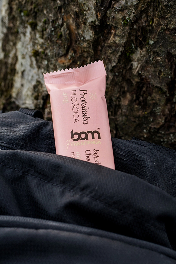 BAM Baton proteinowy, sernik truskawkowy to idealna przekąska na czas, gdy potrzebujesz wartości odżywczych w podróży.