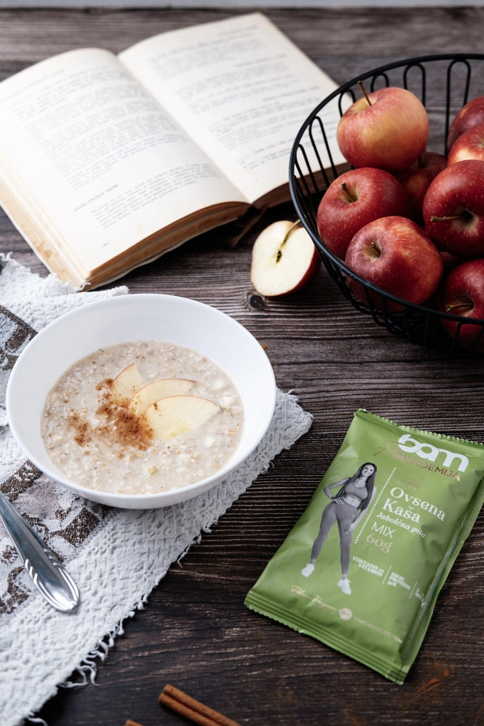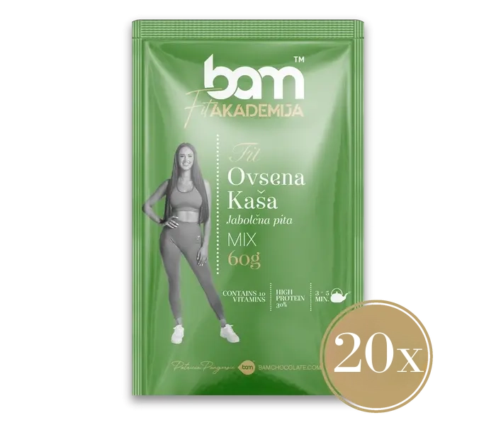 FIT Breakfast, Apple Pie, zawiera 20 kawałków owsianki BAM o smaku szarlotki. Mieszanka ta to unikalne połączenie smaków przypominających świeżo upieczoną szarlotkę, połączone z bogatymi wartościami odżywczymi owsa. Mieszanka ta dostarcza niezbędnego białka i błonnika potrzebnego do zbilansowanej diety. Pozwala zdrowo i energicznie rozpocząć dzień. Dzięki BAM Oatmeal o smaku szarlotki otrzymasz energię, której potrzebujesz, aby rozpocząć dzień od samego rana.