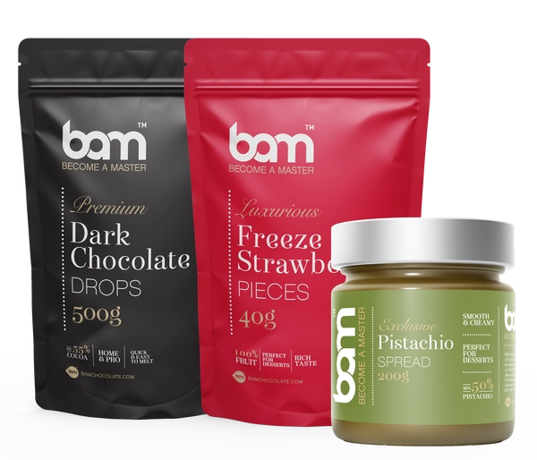 BAM to topowa linia produktów stworzona z wizją przybliżenia domowym cukiernikom najwyższej jakości czekolady i profesjonalnych produktów do pieczenia. Produkty BAM są przeznaczone dla każdego, kto uwielbia tworzyć z wysokiej jakości składników i wyrafinowanych smaków nawet za domowym blatem kuchennym. Zostań z nami mistrzem cukiernictwa!