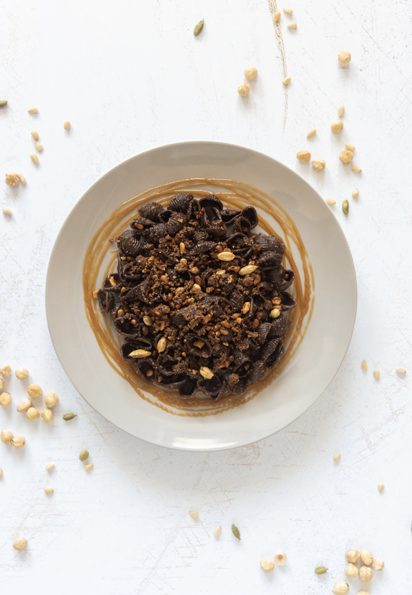 - 30 g łuskanych, prażonych i pokruszonych orzechów laskowych
