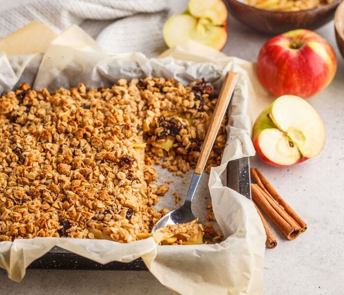 Dzięki odurzającemu zapachowi cynamonu i pieczonych jabłek, kruszonka jabłkowa przypomina nam domową atmosferę i komfort rodzinnych chwil przy filiżance gorącej herbaty.