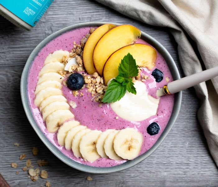 To wspaniałe śniadanie jest pełne świeżych owoców, chrupiącej granoli i kremowej bazy jogurtowej, która wypełni Cię witaminami, minerałami i białkiem. Aby uzyskać dodatkowy słodki smak, pasta kokosowa BAM doskonale uzupełnia boule. Składniki zostały starannie dobrane, aby zapewnić wszystko, czego potrzebujesz na udany dzień, niezależnie od tego, czy wybierasz się do pracy, szkoły czy na zajęcia sportowe.